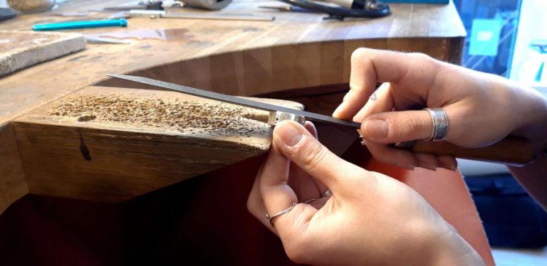 Mais dès les premiers jours d’apprentissage du métier de bijoutier, c’est devenu une évidence ! Le métal a cette capacité d’être scié, soudé, limé, tordu et même fondu, qui fait de lui un matériau aux possibilités illimitées. C’est ce qui me plaît dans ce métier ; tout ce que l’on peut imaginer est réalisable à condition de trouver la bonne approche, et on ne cesse d’apprendre.
